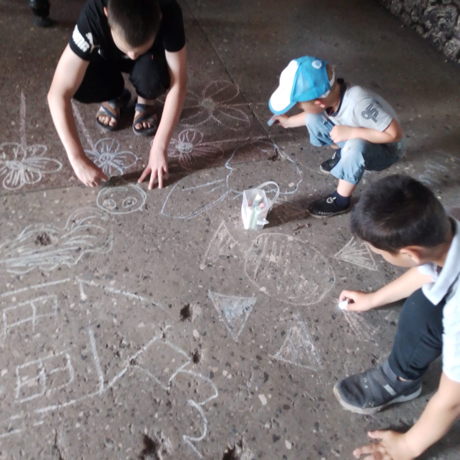 Дети с энтузиазмом взялись за мелки и стали художниками-авангардистами. Каждый из них выразил свои эмоции и фантазии, создав на асфальте лето в красках.