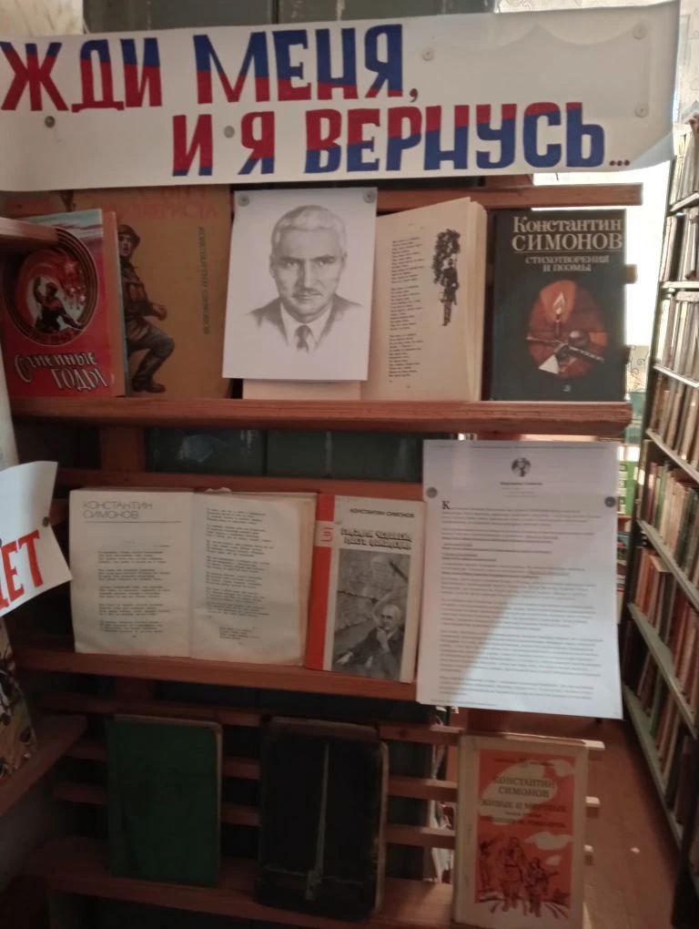 В честь юбилея писателя, 28 ноября 2025 года — 110 лет со дня рождения Константина Симонова, в Острянском библиотечном филиале открылась выставка «Жди меня, и я вернусь». В экспозиции представлены его произведения, стихи и биография.