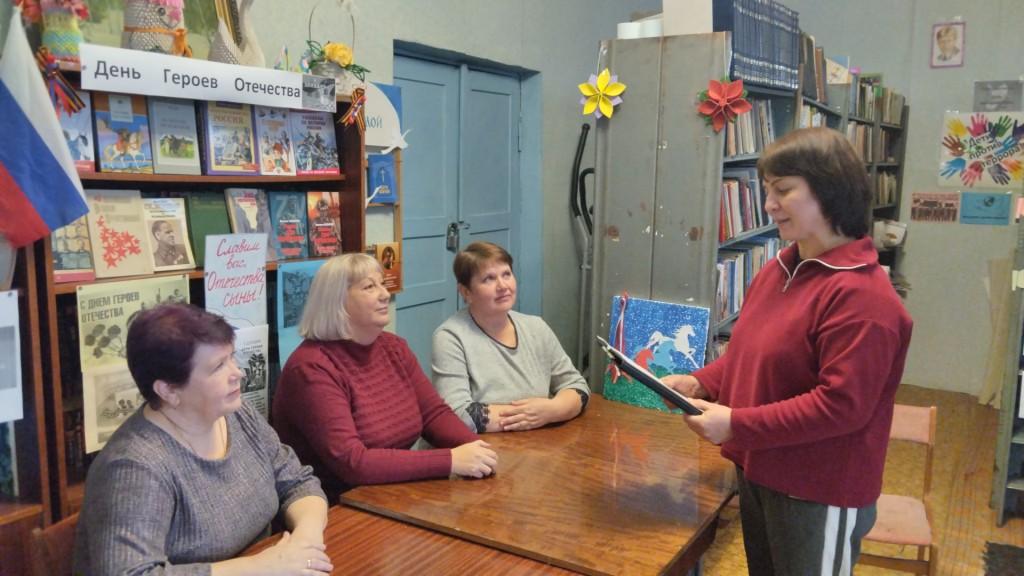 В этот день в библиотеке прошел видео-лекторий для читателей. В ходе мероприятия участники познакомились с историей памятной даты, примерами героизма и отваги воинов России. Библиотекарь Баркалова Алла Викторовна предложила читателям рассказать о своих знакомых, родственниках, о героических поступках, совершенных ими во имя защиты Родины. И, конечно, Алла Викторовна затронула тему о нашем настоящем – о Специальной Военной Операции на Украине, о том, как мужественно и героически сейчас сражаются воины с нацистами, освобождая русскоязычное население от истребителя.
