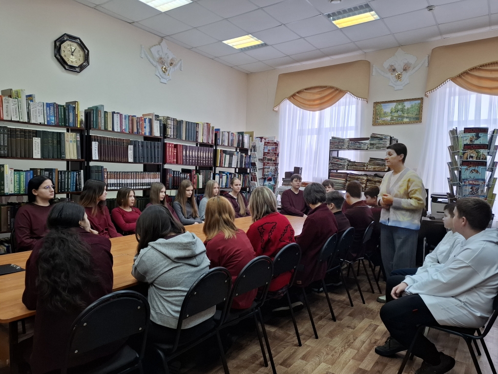 Давным – давно дымы не застят Неба, и светел нив разлив. Где земляки стояли насмерть, Собой Отчизну заслонив. На рубеже, омытом кровью, Мы в память тех, кто шёл в бои, С благоговеньем и любовью Склоняем головы свои. С каждым годом, прошедшим после окончания Великой Отечественной войны, Великая Победа над фашизмом становится всё более исторически значимой. В понятии «победа» всё больше отражаются черты и тенденции, присущие эпохе, в которой происходила война, его содержание приобретает более глубокий социально значимых смысл как для народа, так и для всего человечества. 30 января – День освобождения Нижнедевицкого района от немецко-фашистских захватчиков. Село было оккупировано с июля 1942 года по январь 1943 года. Более 200 дней шли упорные бои, пока вечером 30 января Советское информационное бюро сообщило всему миру об освобождении последних сёл района. В преддверии праздника 29 января в районной библиотеке с учащимися 7б класса Нижнедевицкой гимназии прошёл час памяти «Нижнедевицк: земля мужества и героизма». Ведущая Татьяна Плохих рассказала ребятам о боях, проходивших на территории Нижнедевицкого района, о бесчинствах фашистов на оккупированных территориях, о героическом сопротивлении местных жителей. Рассказала о героях, участниках освобождения, которые своим мужеством и героизмом отстояли наш район. Учащиеся Никулина Анастасия и Новиков Макар подготовили информацию о героях Наде Коваленко, в честь неё названа улица в Нижнедевицке и о Николае Загорском, памятник которому установлен в с. Вязноватовка. Гостем мероприятия была Никулина Клавдия Семёновна – дочь участника Великой Отечественной войны, полного кавалера Орденов Славы Попова Семёна Кузьмича. Она рассказала о своём отце и прочитала свой рассказ «Юные помощники». Ребята познакомились с её книгой «Фронтовая дорога земляка», которую она посвятила своему отцу. Интерес у школьников вызвала книжная выставка «Сквозь метель войны я вижу…» посвящённая Нижнедевицку. На которой представлен газетно-журнальный материал и книги о войне. Также на ней представлены фотографии наших земляков. Прошло восемьдесят три года с момента освобождения Нижнедевицка. Сегодняшний день и час вызывает в сердце каждого радость и горе, счастье и боль, бесконечную и великую гордость за свой народ, народ освободитель и победитель. В нашей памяти навечно останутся имена тех, кто отдал свою жизнь, освобождая Родину от ненавистного врага. Знать свою историю, помнить о тех, кто отдал свои жизни за свободу – это задача подрастающего поколения. Мы должны сохранять память о тех, кто сражался за нашу страну, чтобы не только уважать их наследие, но и передать будущим поколениям, что настоящая сила кроется в единстве и любви к Родине.
