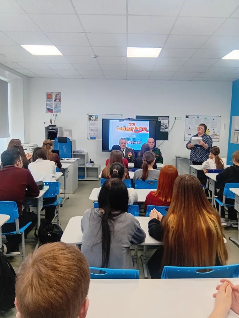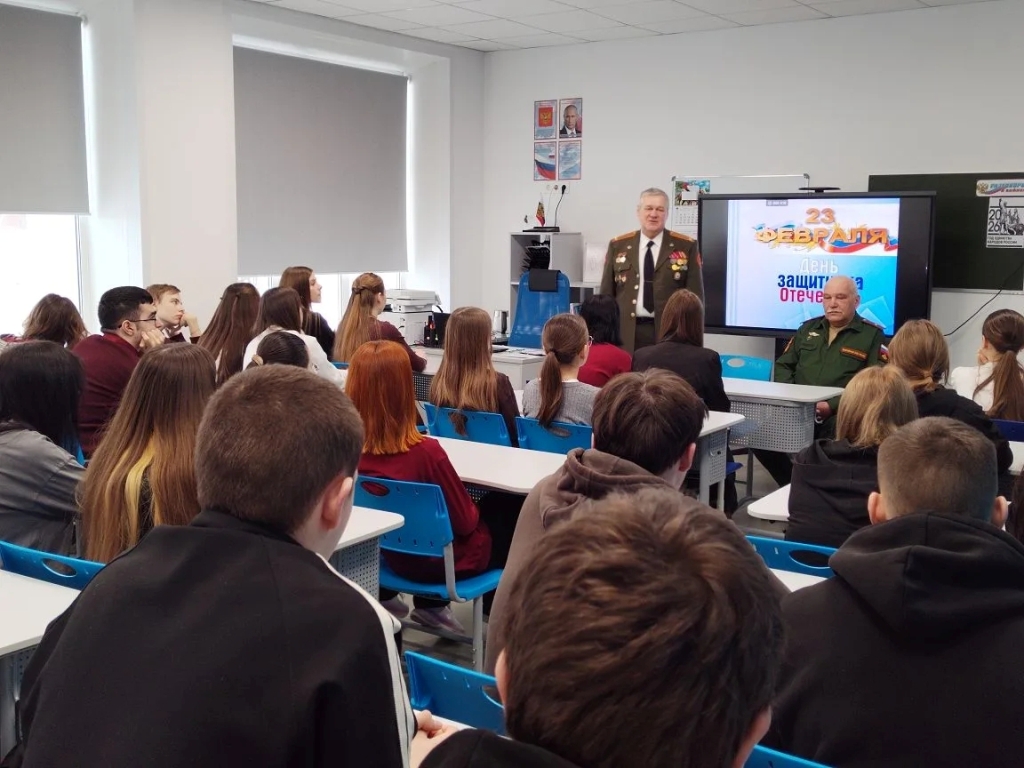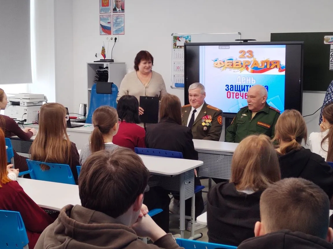В современной России День защитника Отечества напоминает не только о героизме Красной Армии, но и обо всех воинских подвигах в истории нашего государства. Почётными гостями мероприятия были: Крылов Александр Дмитриевич, подполковник запаса, и Быканов Александр Ефимович, майор запаса.