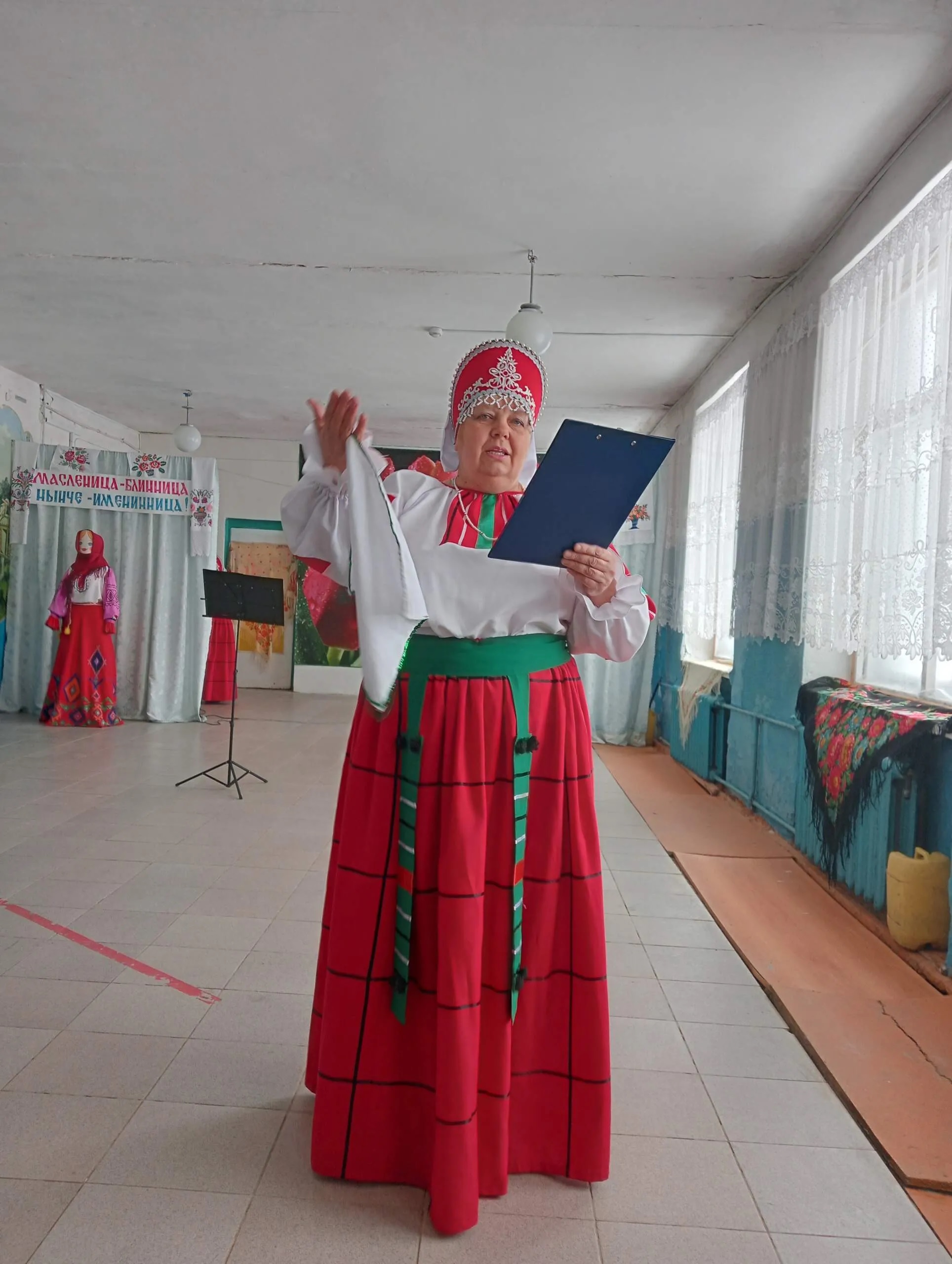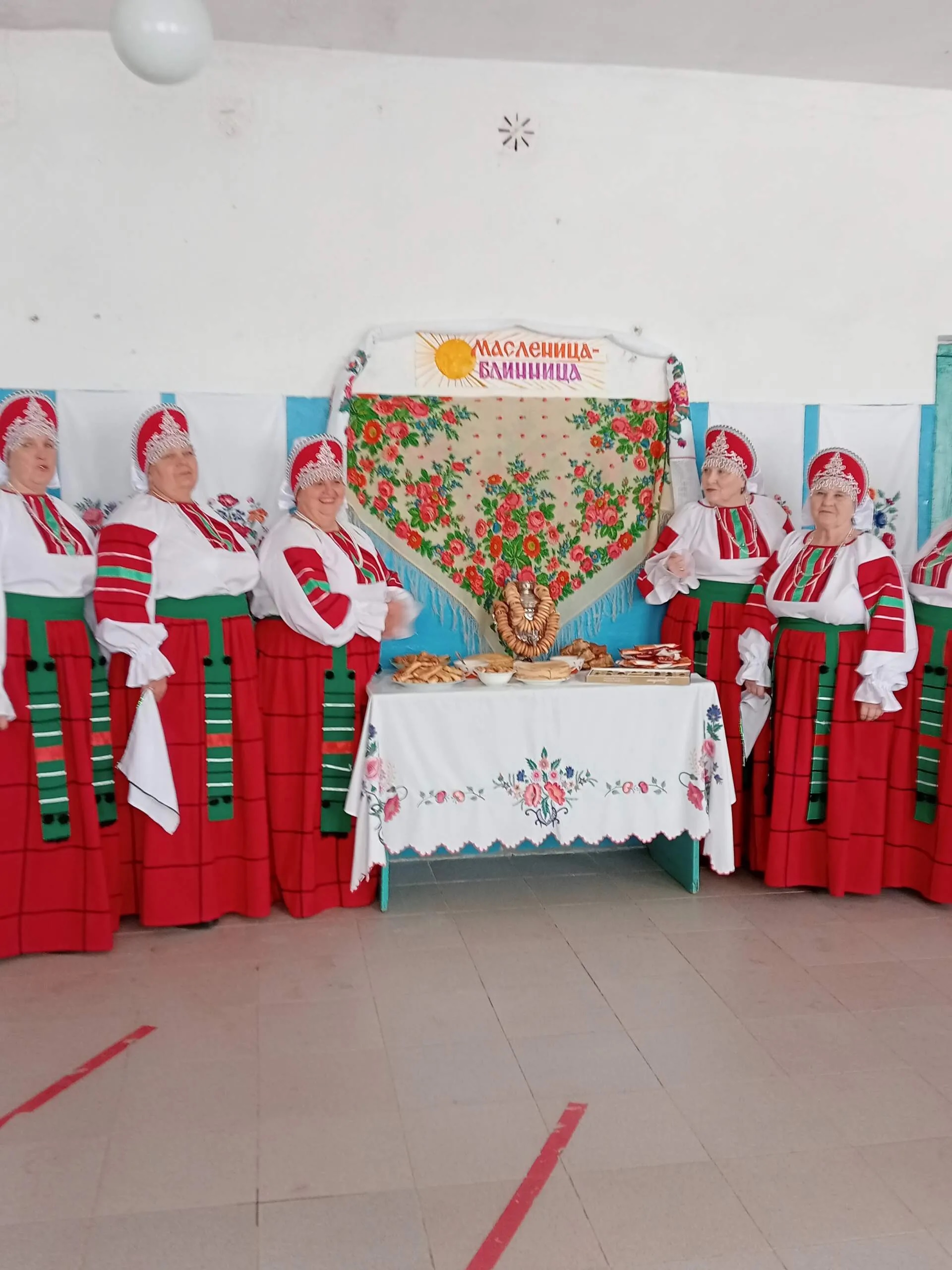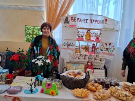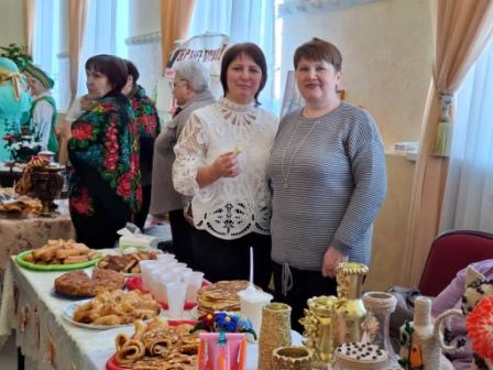 В фойе была организована выставка «Мастера родного края», где местные умельцы представили свои работы. Каждое поселение также накрыло столы, предлагая гостям блины — главный символ праздника, а также разнообразные мучные изделия и напитки. Продолжился праздник театрализованным представлением.