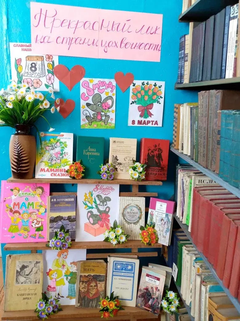В Михневской библиотеке прошла книжная выставка «Прекрасный лик на страницах вечности», посвящённая Международному женскому дню.